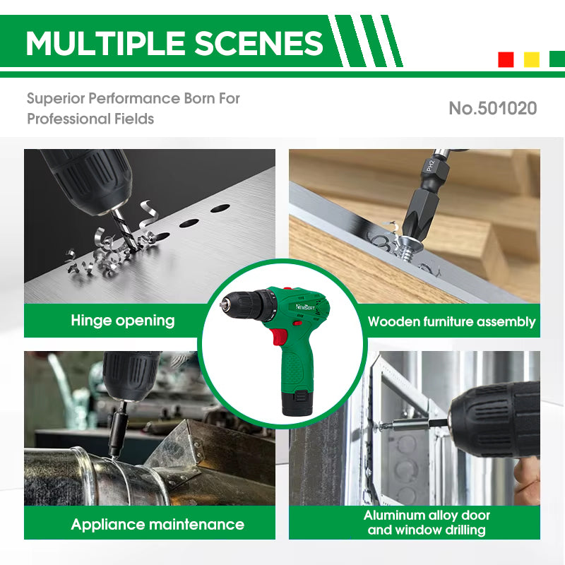 NewBeat 12V 3/8 Variable Speed 18+1 Torque 20N.m Cordless Drill Set with 1 Battery & 1 Charger